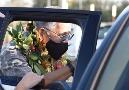 The DLNR’s Maui branch organized a drive-thru celebration on Jan. 15 at Keopuolani Park, where co-workers, friends and supporters drove by to congratulate Hau on his decades of service with the department.