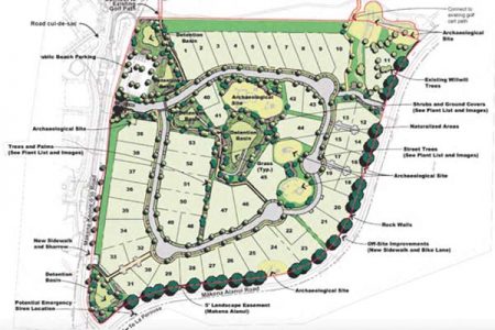 The proposed H-2 Residential Project would consist of 53 condominium residential lots, beach parking, rock walls and related infrastructure improvements on 28 acres of land along Makena Alanui Road. After going back to the drawing board, developer H2R LLC requested approval of its final environmental assessment for a special management area use permit for the project.