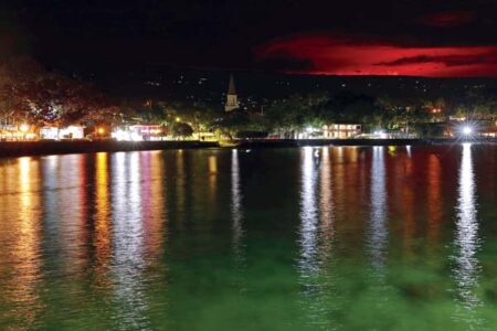 - The glow of the Mauna Loa eruption is seen from Kona Bay on Monday in Kona. AP photo