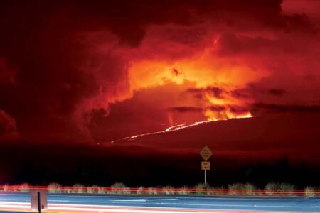 HONOLULU — Lava is shooting 100 feet to 200 feet into the air as Hawaii’s Mauna Loa, the world’s largest active volcano, erupts for the first time in nearly 40 years.
