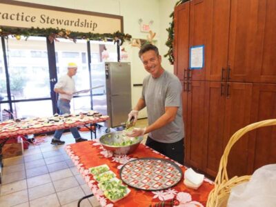 - Lahaina resident Michael Damato volunteers to serve caesar salad to those in need of a meal on Christmas Day in Stawasz Hall at St. Theresa Church.