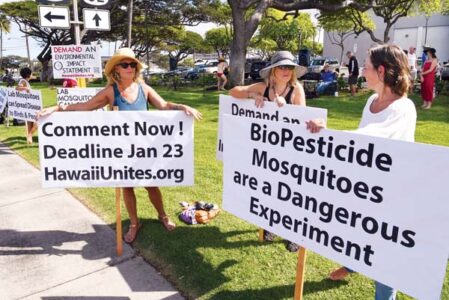 Sign-wavers protest state’s mosquito release plan