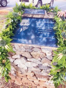 The Stone of Hope monument, the only one of its kind in the state, was dedicated in 2006 in memory of the life and legacy of Dr. King. As done for the past several years, Sharon Nohara of the Maui United Buddhist Women’s Association adorned the monument with lei on Monday.