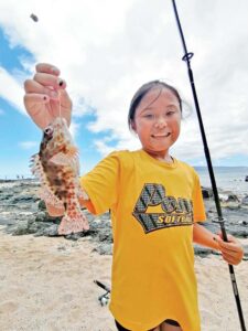 - A participant in Maui Hui Malama’s summer fishing camp program shows off a recently caught fish. — MAUI HUI MALAMA photo