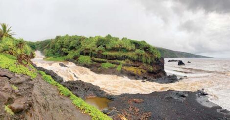 THIRD PHOTO: In Kipahulu, water rapidly flows through the Pools of Oheo into the ocean Friday.