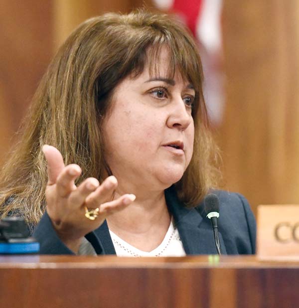 - Then-Corporation Counsel Moana Lutey speaks during a council meeting in 2019. Lutey and former First Deputy Corporation Counsel Richelle Thomson were unanimously approved as county clerk and deputy clerk, respectively, after their appointments were approved only temporarily while the county sought more applicants for the jobs. — The Maui News / MATTHEW THAYER photo