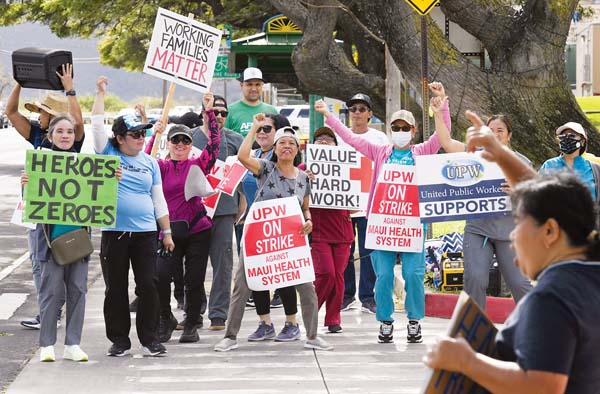 Maui Health said that despite some rumors, “we have not discontinued health insurance benefits for our UPW members, and at this time we have no plans to implement a ‘lock out.’ ” It encouraged patients to continue to seek medical care during the strike, and to let security know if they are experiencing delays so picketers and/or MPD can be notified when emergent medical access is necessary.