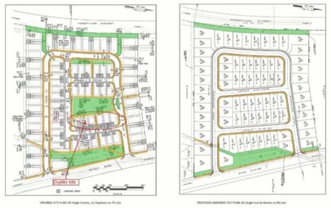 New plans also call for more single-family homes instead of planned duplexes