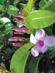 Shiny leaves and purple flowers? Check that it’s not a poisonous rubber vine