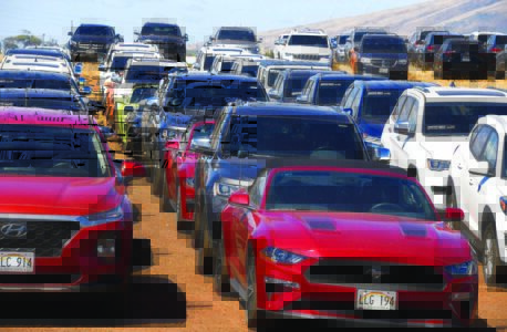 - Rental cars are lined up in a field near Kahului Airport on Saturday morning. While Maui has seen fewer visitors in late spring and early summer compared to last year, visitor spending is well outpacing 2022 and 2019 levels, especially on the Neighbor Islands, according to a recent report. The Maui News / MATTHEW THAYER photo