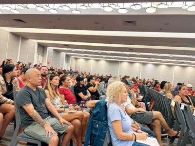 Hundreds of people, many in red T-shirts that read “Lahaina Strong,” turned out for the Maui County Council’s Government Relations, Ethics and Transparency Committee meeting in the Honoapiilani Ballroom at the Westin on Wednesday. It was the committee’s first meeting in West Maui to take testimony on forming a recovery and resiliency plan in response to the Aug. 8 fires. No legislative action was taken.