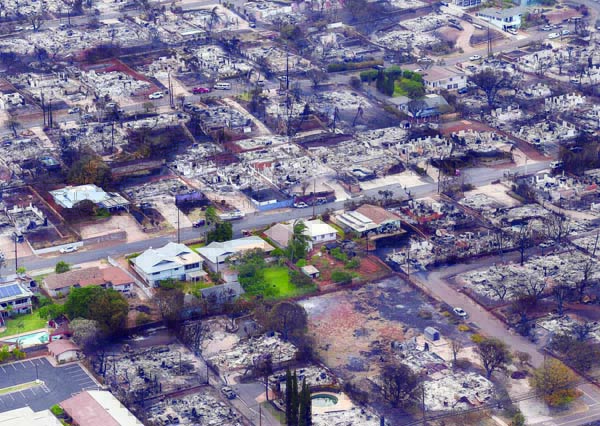 - Some homes are still left standing in a Lahaina neighborhood on Aug. 10. Mayor Richard Bissen says Maui County is facing a $31 million shortfall due to the Aug. 8 wildfires, primarily because of a loss of property taxes from homes that were lost. — The Maui News / MATTHEW THAYER photo