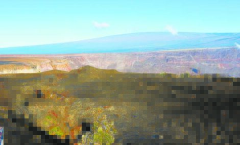 - Hawaii island’s Mauna Loa (background), towers over the summit crater of Kilauea volcano in Hawaii Volcanoes National Park on April 25, 2019. A magnitude 5.7 earthquake struck the world’s largest active volcano on Friday, Mauna Loa on Hawaii island, knocking items off shelves in nearby towns but not immediately prompting reports of serious damage. — AP file photo