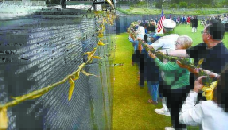 THIRD PHOTO: A 160-foot Lei of Aloha is presented to The Wall That Heals Thursday evening.