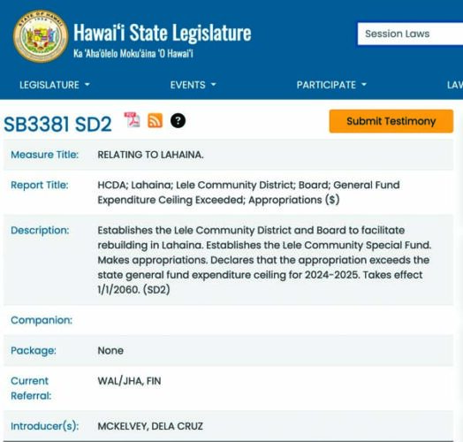 KAHULUI, Hawaii—Akakū Maui Community Media will be hosting a discussion with Hawaii Community Development Authority’s (HCDA) Director, Craig Nakamoto and team members Ryan Tam and Garet Sasaki, who will be joining Eric Arguero, Jackie Keefe and Senator Angus McKelvey to discuss SB3381. This bill calls for a ‘Lele Community District’ in Lahaina. Doors open at 9:30 a.m. … Continue reading Lahaina Legislative Working Group presents Discussion on SB3381 at Akaku Maui Community Media via Zoom