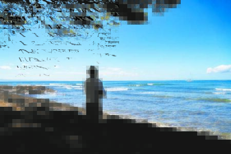 - Abraham “Snake” Ah Hee, one of the first crew members of Hokulea —the Polynesian double-hulled voyaging canoe, looks at the ocean at Launipoko Beach Park on Feb. 23 in Lahaina. Hawaii authorities said Thursday that coastal waters off the wildfire-stricken town of Lahaina pose no significant risk to human health and it’s safe to surf and swim there. AP file photo/Mengshin Lin