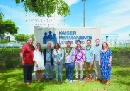 - Maui Mayor Richard Bissen (far left), Kaiser Permanente official, nurses, staff, Maui community partners stakeholders, and local dignitaries gathered on the grounds of the Hyatt Regency Maui Resort on Tuesday to celebrate the new 5,200-square-foot Lahaina Clinic. Photos courtesy Kaiser Permanente