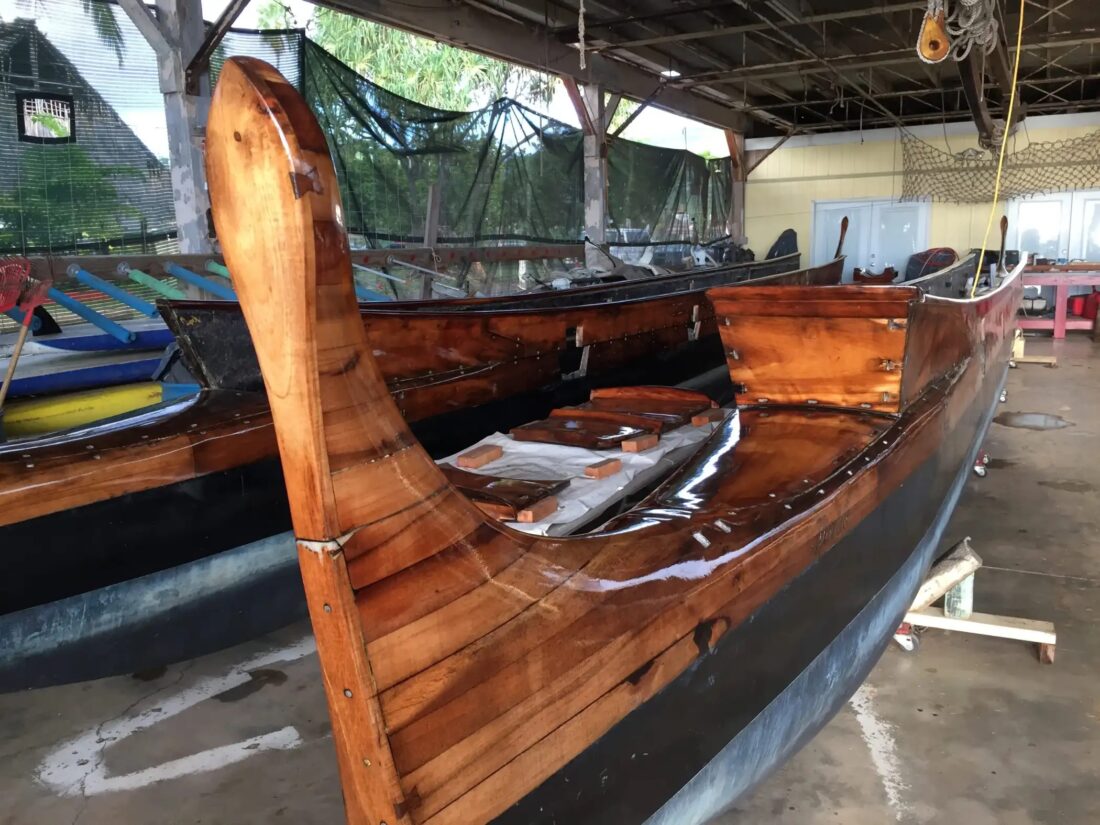 He added that they didn’t know if they would be able to use koa for the new canoe because it was hard to get.