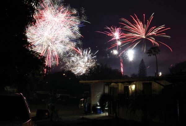 Fireworks explode in the sky in this photograph from The Maui News archive. Officials with the Maui Fire Department are urging people not to ignite illegal fireworks for the Fourth of July holiday. The Maui News archive photo
