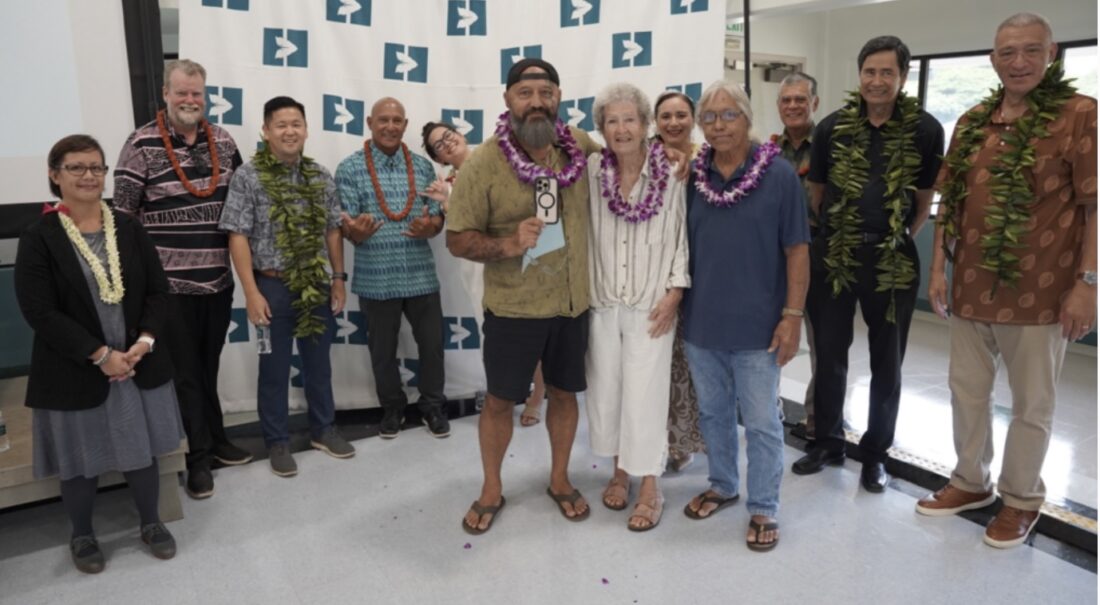 Samuel Kamuela Ka’eo and family celebrate their agricultural lease award on Hawaiian Homestead land alongside state and county leaders. Photo courtesy Department of Hawaiian Home Lands