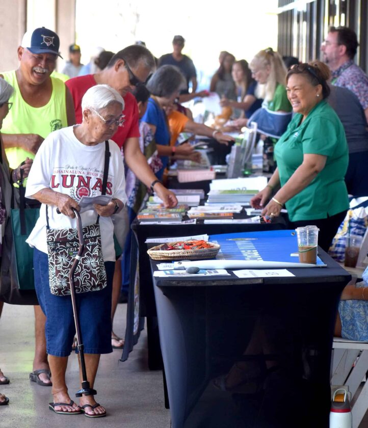 Maui County Senior Fair attendees stop by the Maui Nui Broadband table on Nov. 2, 2024, at the Maui Mall Village. This year’s Senior Fair will be from 10 a.m. to 2 p.m. Nov. 15 at the Queen Ka`ahumanu Center. Courtesy photo