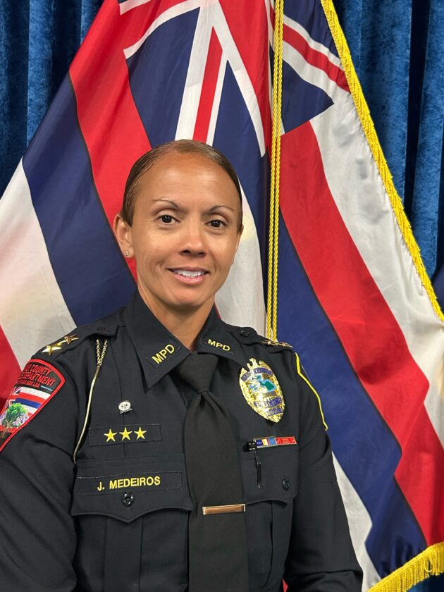 Medeiros joined MPD in 2005, beginning her career as a police officer in the Wailuku Patrol District. She was honored as Maui County’s Officer of the Year by the Hawaii State Law Enforcement Officers Association in 2010 and recognized as the department’s Woman of Excellence in 2018.
