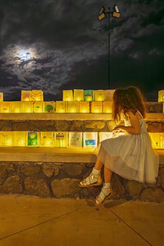 Hundreds of people shared messages of hope, love and renewal during Aloha Amplified’s inaugural Lights for Lahaina event on Sept. 6. The nonprofit group is currently submissions for its Lahaina time capsule project. Photo courtesy Aloha Amplified