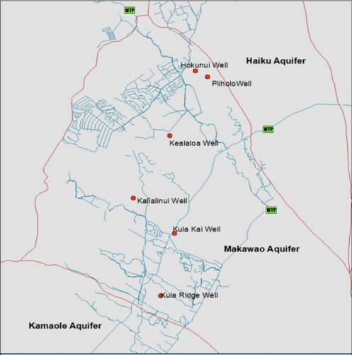 In long-term planning, the water department is also considering acquiring or drilling six additional wells in the Makawao aquifer area, including a well at Piiholo, Hokunui, Kealanoa, Kalialinui, Kula Kai and Kula Ridge.