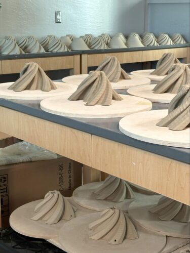 Specially designed modules, approximately one foot in diameter, are produced using a 3D clay printer and then fired in a kiln. The spiral-shaped recesses mimic natural reef crevices and provide safe microhabitats for coral larvae to settle and grow. Photo courtesy Joshua Madin
