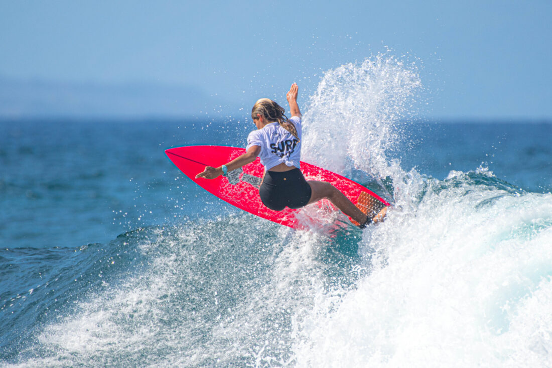 “It was big and very scary,” she continued. “My first heat, I was really nervous. I was like really scared as I paddled out, but I caught the set. I couldn’t get back out. I was like terrified the whole heat, and I could never get to the peak. I got out of my heat. I actually got second. I was happy but I was really frustrated with myself. I wasn’t even going to compete, but my mom was like, ‘Just go out there and do your best.’ I was still really freaked out. I don’t know how, but I won.”