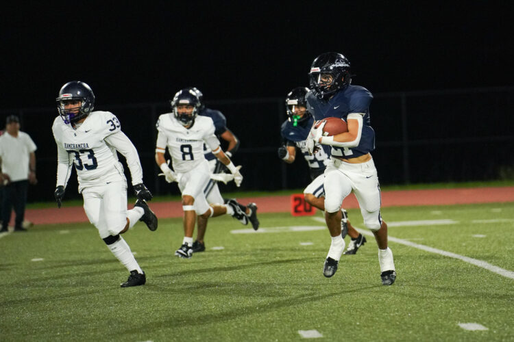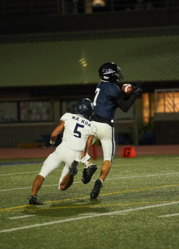 KS-Maui quarterback Kekoa Keau-Davis completed nine of his 16 passes for 130 yards, while Loea Asuega-Stark with two catches for 72 yards and Beltran with three for 25 yards were his leading targets.