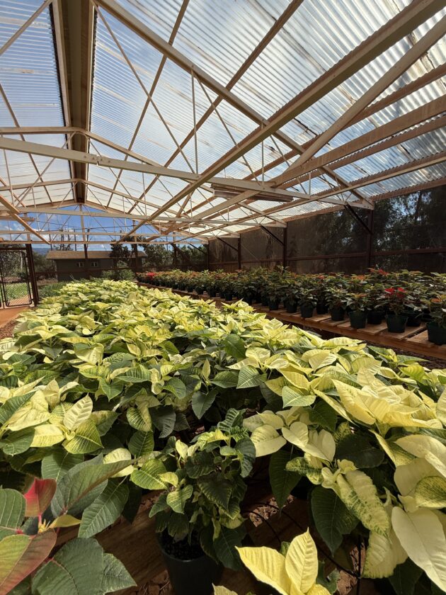 Poinsettias grow in the greenhouse at the University of Hawaii Maui College Molokai Farm. Photo courtesy University of Hawaii Maui College