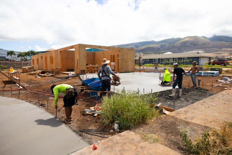 Construction continues in the 2023 Maui wildfire zones, where 100 structures have been rebuilt and nearly 300 homes are now underway. Photo courtesy Maui County