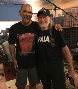 “We recorded his vocal and guitar work on the Doobie Brothers’ album (“World Gone Crazy”),” said Russell. “Gail Swanson had Willie sing a duet with her on her album, and then Willie brought his producer and we worked on his ‘God’s Problem Child’ album. Recently, Willie did the duets (album “Jake & Friends”) with Jake Shimabukuro, and the last thing I did with Willie was Edie Brickell’s song ‘Sing to Me, Willie.'”