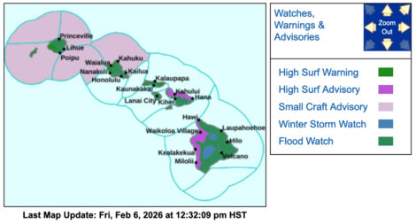 The National Weather Service has issued a flood watch for Hawaii, as well as a high-surf advisory for Maui’s north-facing shores.