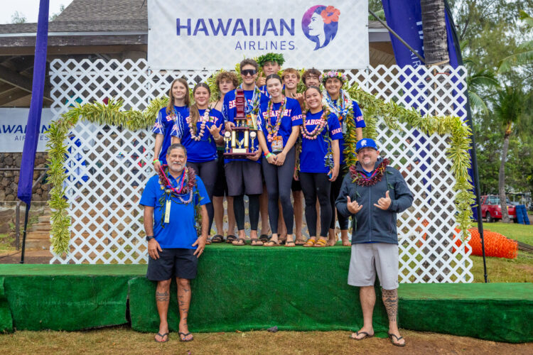 Seabury Hall’s mixed canoe paddling team won the Hawaii High School Athletic Association Division II state championship Saturday at Keʻehi Lagoon Beach Park on Oahu. Bryan Berkowitz/Seabury Hall