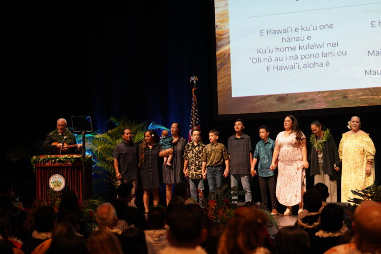‘Ōiwi Resources Director Kapono’ai Molitau offered a pule to open the event, and Anthony Takitani served as the master of ceremonies. The State of the County closed with Bissen picking up a ukulele and leading the audience in a singing of “Hawai’i Aloha.”