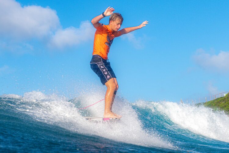 Seth Jucker’s win in longboard No. 2 allowed Maui Prep to tie Maui Christian for the boys team title. Photo courtesy Dayanidhi