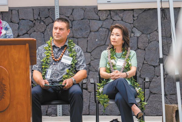 Leo Caires, former chief of staff for Mayor Richard Bissen, sits next to Hawaii Lt. Gov. Sylvia Luke during a blessing for the new Hana Health Rehabilitation and Support Center in East Maui in this photo from The Maui News archives. Brittany Arisumi-Rodrigues photos