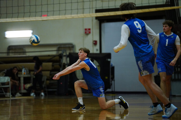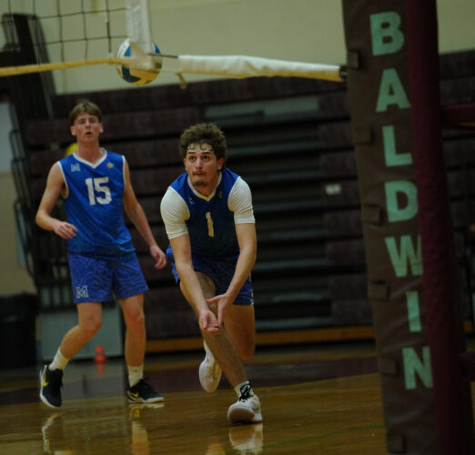 Baldwin senior Richard Hoopii (16) receives a serve against Maui High.