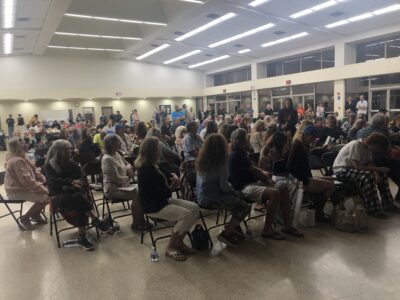 More than 150 people attended the meeting in Kihei Tuesday to discuss flood recovery from the rain-laden storms in March. Some criticized the county for failing to plan in advance. Gary Kubota/The Maui News