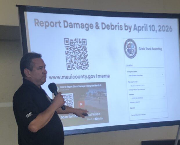 Kono Davis, deputy administrator for the Maui Emergency Management Agency, encouraged those affected by the flooding to document damage with photographs, keep receipts for repairs and file reports at mauirecovers.org by April 10.
