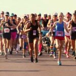 - Runners take off from the starting line at the Na Holo Wahine 5K at Keopuolani Park in Kahului on Saturday morning. — The Maui News / CHRIS SUGIDONO photo