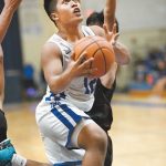 Maui High’s Brycetyn Boco scored on a breakaway to push the lead back to eight with 6 minutes to play. Cacho made a layup to increase the lead to 50-40 a minute later.