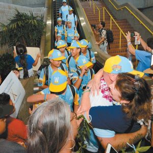 The first team from Maui to advance to the traditional Little League World Series at the 11- and 12-year-old age level arrived home to a wild throng of well-wishers at Kahului Airport.