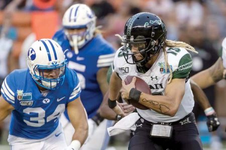 In his UH career, McDonald passed for 8,032 yards and 70 touchdowns while also rushing for another 880 yards and 12 TDs. He led the Rainbow Warriors to bowl games in both his seasons as the primary starter at quarterback, including a 38-34 victory over BYU in the Hawaii Bowl last month that capped a 10-5 season.