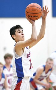 - The Spartans’ Joaquin Donez takes a 3-point shot. — The Maui News / MATTHEW THAYER photo