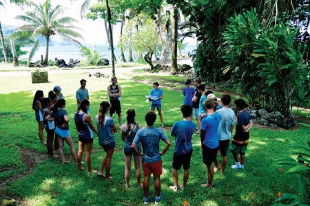 - Kihei Charter School cross country coach Cassie Kepler speaks with her team during a retreat to Keanae in 2019. Kepler has taken an unconventional route to coaching, having not played organized sports as a youth before commiting to running when she was 22. Photos courtesy of Cassie Kepler