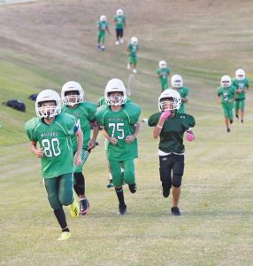 On Tuesday evening, the Wailuku Rainbows’ U14 squad was practicing on one end of the field while the U12s were on the other. Each football team is limited to 25 kids and five coaches.