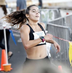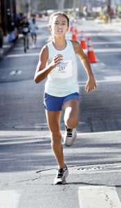 - Keilana Maldonaldo, 11, nears the finish line in the girls 11-12 mile.